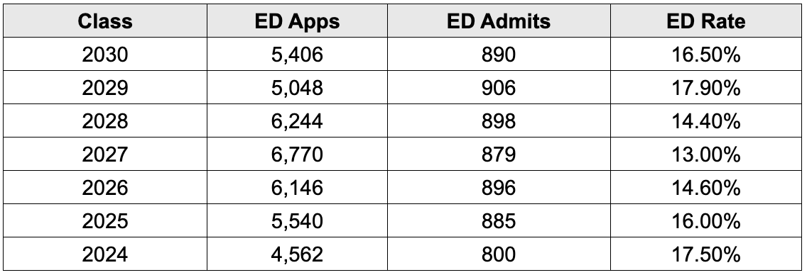 resulting in an Early Decision acceptance rate of approximately 16.5%